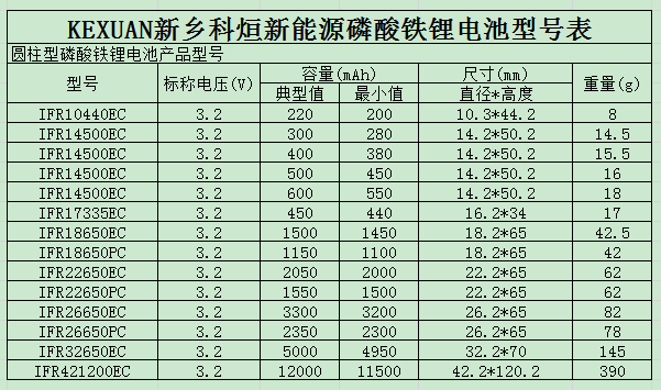 本規(guī)格書描述了磷酸鐵鋰鋰電池IFR14500-550mAh的有關(guān)技術(shù)指標(biāo)及使用注意事項(xiàng),由新鄉(xiāng)科烜新能源科技有限公司提供。